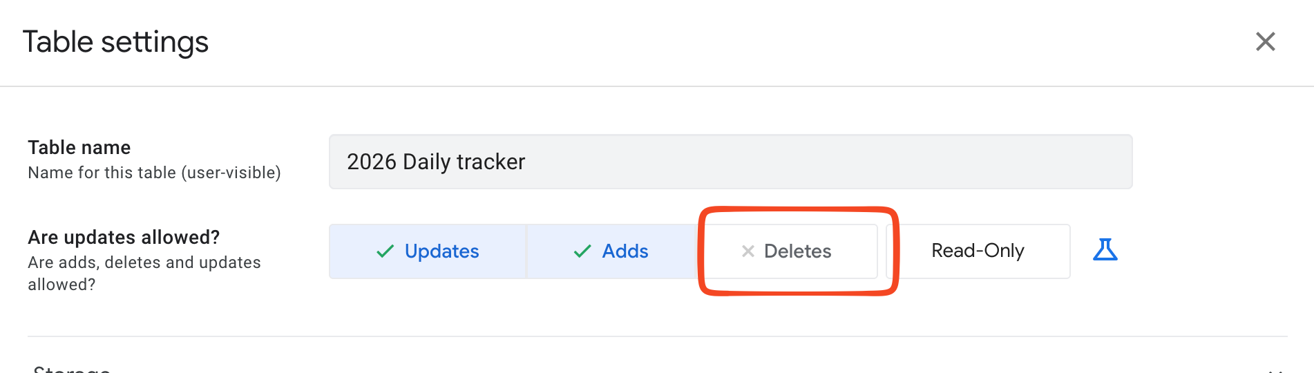 and turn off “Deletes”: